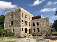 Он расположен на участке площадью 10 000 кв.м., могут быть добавлены хозяйственные постройки. На участке рядом с главным домом также есть домработница, которая уже готова. Участок находится недалеко от главной дороги от Аккры до Кот-д'Ивуара.