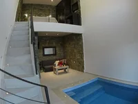 Гостиница имеет угловое расположение. У объекта есть кондиционер. Недвижимость продается с мебелью. К недвижимости относится парковочное место, сад. На территории расположен бассейн личного пользования.