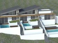 Участок имеет разрешение на строительство, которое позволяет построить 2 два таунхауса и 3 квартиры. В частности: 2 таунхауса 71 кв.м. с отдельным бассейнам 3,5 х 6,5 м, 1 студия 36,5 кв.м. с частным бассейном 3,5 х 5,5, 1 квартира на первом этаже площадью 60 кв.м. и 1 квартира на втором этаже площадью 40 кв.м. Все квартиры и таунхаусы имеют отдельный вход, частную парковку и беседку.