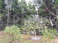 Площадь участка составляет 1700 кв. М. Расположен на холме напротив пляжа в деревне Метаморфоси, в окружении соснового леса.