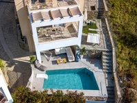 Вилла располагает большим частным бассейном, который подарит вам моменты отдыха и развлечений с видом на бескрайнее синее море.