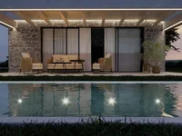 Дом расположен на двух уровнях и имеет две просторные спальни на верхнем этаже, большие окна, которые наполняют интерьер естественным светом, и гостиную с кухней открытой планировки, ванные комнаты на каждом этаже для удобства. Сад также будет иметь свой собственный ландшафтный дизайн. Каждая вилла имеет свой собственный бассейн и два парковочных места. А панорамный вид с террасы бассейна просто захватывает дух и никого не оставит равнодушным. Если вы ищете дом мечты или инвестиции, эта вилла предлагает беспрецедентный образ жизни в одном из самых желанных мест в Халкидики.