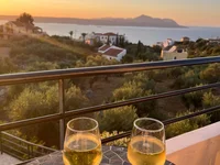 Изогнутая лестница ведет на первый этаж, где вы найдете яркую гостиную открытой планировки с полностью оборудованной кухней, обеденным пространством и гостиной. Этот уровень открывается для двух балконов - один с видом на море и горы спереди, и больший боковой балкон с панорамным видом на море. Отсюда винтовая лестница ведет вас к террасе на крыше с видом на 360 °, в то время как внешняя мраморная лестница ведет вниз к частной внедорожной парковке.