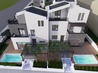 На территории виллы есть собственный бассейн, солнечные панели для нагрева воды и небольшой вид на море.