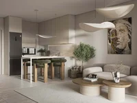 Чистые линии в интерьере, природные оттенки, большие балконные двери и натуральные материалы создают атмосферу уюта и элегантности. У квартиры есть частная терраса с выходом в сад, а её расположение в комплексе обеспечивает как уединение, так и прямой доступ к зонам отдыха. Комплекс включает парковочные места, энергоэффективные окна и находится рядом с рынком, ресторанами и общественным транспортом.