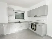 - Открытый план встроенной кухни с бытовой техникой (печь и посудомоечная машина)