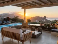 Расположенная в востребованном районе Калафатис, остров Миконос всего в 15 минутах от оживленного города Миконос, эта элегантная вилла в Кикладике идеально воплощает в себе вечное очарование острова, смешанное с современной изысканностью. Разработанный, чтобы охватить его окрестности, он простирается на 188 кв.м. в частном участке площадью 2800 кв.м., предлагая завораживающие панорамные виды на Эгейское море и исключительное чувство спокойствия и уединения. Интерьер отражает чистоту и элегантность традиционного кикладского стиля, где яркие белые поверхности, особенности камня и природные текстуры объединяются, чтобы создать спокойную и привлекательную атмосферу. Щедрые жилые помещения открытого плана были разработаны для комфорта и легкого потока. Солнечная гостиная с деревянным потолком ручной работы и несколькими зонами отдыха обеспечивает теплую обстановку для отдыха или развлечения гостей. К этому пространству примыкает обеденная зона и три полностью оборудованные кухни, идеально подходящие как для интимных встреч, так и для больших мероприятий. Вилла включает в себя пять безмятежных спален, каждая с ванной комнатой, кондиционером и видом на море или сад. Рафинированные деревянные детали, мягкие тона и кустарная отделка добавляют характер и подлинность, вызывая заниженную элегантность Киклад. На открытом воздухе вилла разворачивается вокруг частного бассейна, окруженного солнечными террасами, затененными гостиными и обеденными зонами, а также баром с барбекю, с видом на глубокий синий Эгейский океан. Ландшафтный сад и крытое парковочное место дополняют это тщательно продуманное уединение. Предоставленная полностью меблированной и готовой к удовольствию, эта недвижимость предлагает бесшовное сочетание комфорта, конфиденциальности и кикладского очарования - идеальный выбор для тех, кто ищет изысканный дом для отдыха или премиальные инвестиции в одном из самых желанных мест Миконоса.