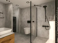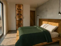 На верхнем этаже расположены ещё две светлые спальни — одна с гардеробной, — которые обслуживаются большим дополнительным санузлом. Все помещения спроектированы с учётом эргономики, использования качественных материалов и современной эстетики.