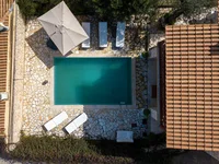 Открытые зоны предлагают захватывающий вид на море с частных террас виллы, в то время как пышный сад, окруженный оливковыми деревьями, обеспечивает безмятежное средиземноморское убежище. Частный бассейн предлагает отдых, создавая идеальные условия для наслаждения природной красотой острова.
