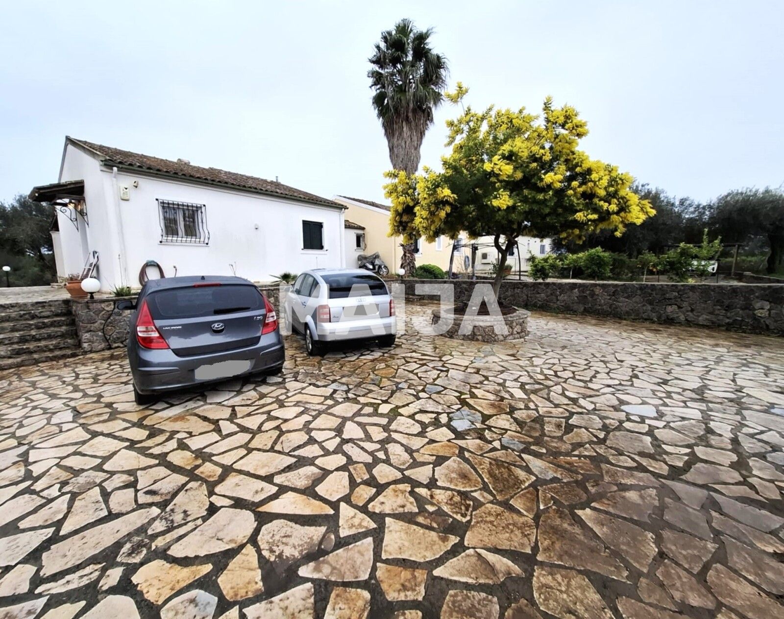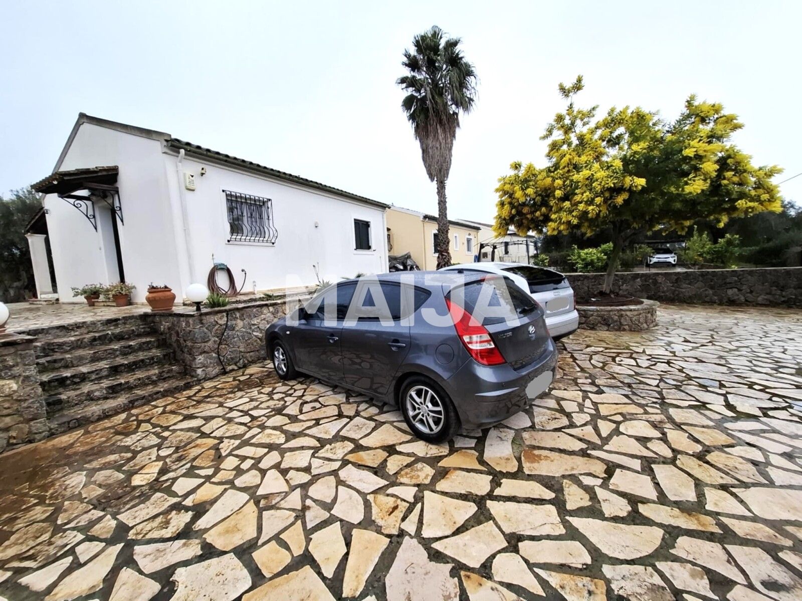 Недвижимость находится на участке исключительного использования площадью 1140 кв.м., частично вымощена и частично благоустроена благоустроенной лужайкой. Открытая площадка полностью закрыта каменной стеной по периметру и электрическими входными воротами, обеспечивающими конфиденциальность и безопасность.