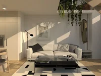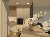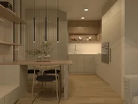 Многоуровневая планировка первого этажа создает ощущение дуплекса/лофта, максимально используя пространство и комфорт без необходимости высокого этажа.