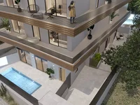 Комплекс предлагает общий бассейн, зоны отдыха и красиво оформленные наружные пространства , идеально подходящие для отдыха и встреч с друзьями. Участок площадью 630,45 м² оснащён внешней теплоизоляцией, солнечным водонагревателем, электрическим отоплением и системой видеодомофона для безопасности.