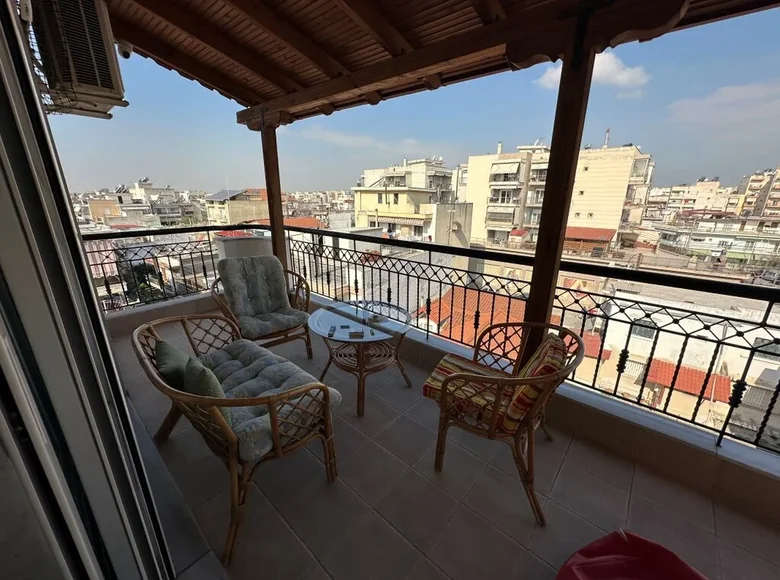 Продается квартира площадью 130 кв.м в Салониках. Квартира расположена на пятом этаже и состоит из 2 спальных комнат, гостиной с кухней, гостиной, одной ванной комнаты, одной душевой комнаты. Квартира имеет угловое расположение. Из окон открывается вид на город. У объекта есть солнечные батареи для нагрева воды, камин, кондиционер, отопление. Недвижимость продается с мебелью. В здании расположен лифт. У объекта установлена сигнализация. К недвижимости относится парковочное место, гараж.