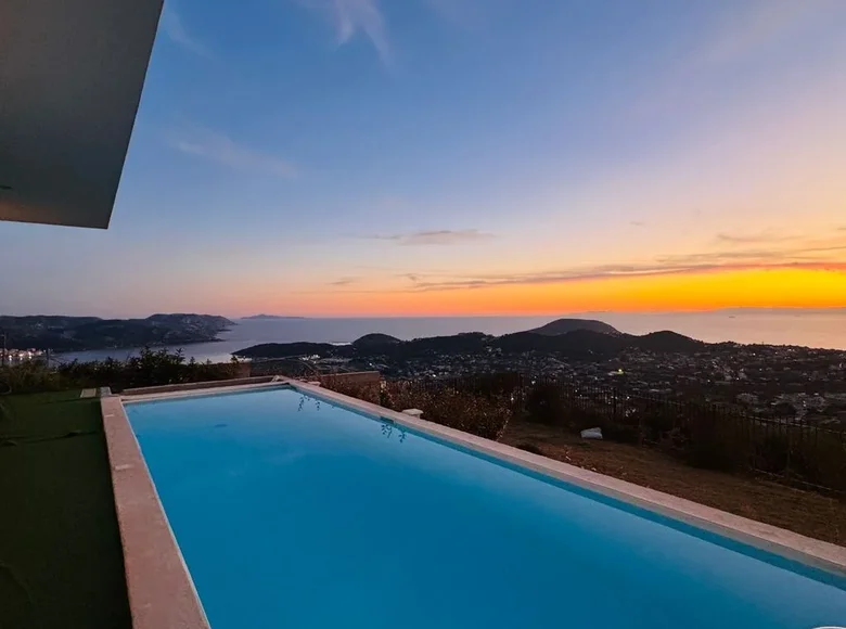 Из окон открывается великолепный вид на море, на горы. У объекта есть солнечные батареи для нагрева воды, камин, кондиционер, отопление. У объекта установлена сигнализация. К недвижимости относится парковочное место, сад. На территории расположен бассейн личного пользования.