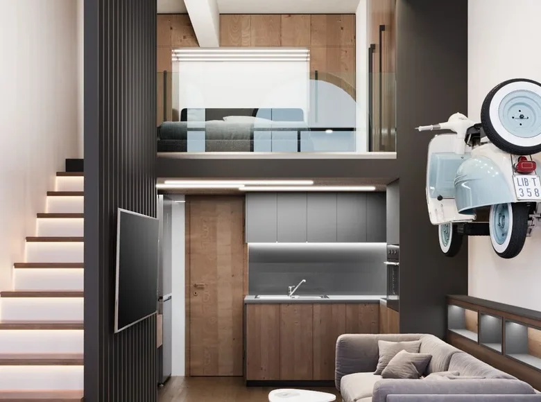Квартира имеет продуманную открытую планировку, обеспечивающую комфорт и функциональность. Полностью меблирована и оснащена всей необходимой бытовой техникой, готова к немедленному заселению или сдаче в аренду. Оснащена электрическим отоплением с кондиционером (A/C), а также электрическим бойлером для горячей воды.
