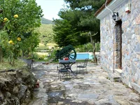 Из окон открывается великолепный вид на горы, на лес. У объекта есть солнечные батареи для нагрева воды, камин, кондиционер, зона барбекю, отопление. Недвижимость продается с мебелью. У объекта установлена сигнализация. К недвижимости относится парковочное место, сад. На территории расположен бассейн личного пользования.