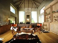 Интерьер коттеджа был разработан с большим вниманием к деталям,таким как дерево и камень во всех комнатах, качественная мебель и ткани, используемые, чтобы дать всем доме теплую и уютную атмосферу. Внешний вид дома также был разработан детально с большой осторожностью, как эстетически так и экологически чистым. Такие дома встречаются редко, и это прекрасная возможность для людей, которые любят горы/сельской местности и любителей зимних видов спорта.