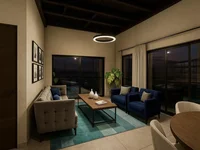 This modern tropical villa features 2 bedrooms with ensuite bathrooms and closets, an open-concept living and dining area, a contemporary kitchen with floating cabinets, a laundry area, BBQ space, and two private decks — ideal for relaxing and enjoying the island breeze.