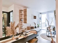 13 район, Сегеди проспект, в новом доме 2019 года, квартира на 4 этаже, 43 м2, гостиная открытая с кухней, спальня, совмещенный санузел, терраса 6 м2. Квартира с красивой отделкой в стиле бохо, полностью обставлена и оборудована, кухонные машины AEG.