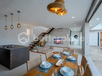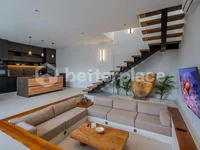 Вилла охватывает два этажа и имеет три просторные спальни, каждая из которых оборудована кроватями королевского размера, встроенными шкафами и ванными комнатами. Большие стеклянные двери в комнатах наверху позволяют в достаточном естественном свете, предлагая бесшовный вид на окрестности. На первом этаже находится столовая и гостиная с открытой планировкой с пользовательским затонувшим диваном и полностью оборудованной кухней - все смотрят на частную зону бассейна. Натуральные деревянные элементы, мебель нейтрального оттенка и традиционные балийские акценты добавляют тепло к чистому дизайну, создавая пространство, которое кажется привлекательным, не будучи чрезмерно украшенным.