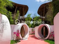 Разработанная с открытой концепцией жизни, каждая вилла органично сочетает в себе современный комфорт с природой. Экосознательный бетон с бамбуковой отделкой создает сложную, но органическую эстетику. С 12 просторными спальнями и 12 ванными комнатами, это поместье идеально подходит для роскошных уединений, частных резиденций или апартаментов премиум-класса. Отличительной особенностью является джакузи на крыше, откуда открывается захватывающий вид на пышное окружение Убуда, идеальное для расслабления и снисхождения.