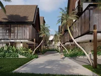 Охватывая землю размером 165 кв.м. и щедрое здание размером 278 кв.м. на двух этажах, вилла спроектирована с изысканной современной тропической эстетикой. Интерьер имеет три просторные спальни, каждая с частной ванной комнатой, оборудованной дождевыми ливнями и современными светильниками, а также универсальное мезонинное пространство, которое может функционировать как четвертая спальня, домашний офис или медиа-комната. Жилые и обеденные зоны с открытой планировкой плавно переходят на кухню западного стандарта, все обрамленные окнами от пола до потолка, которые приносят естественный свет в пространство. Снаружи частный бассейн и парковка на месте дополняют картину спокойной, стильной жизни.