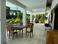 This beautiful, contemporary villa close to the river’s mouth, is generously set on 4340 sqm of land with a spacious building size of 650 sqm over two levels. Built in 2015, the partially furnished property features 4 bedrooms (two bedrooms can be found on the upper level) with ensuite bathrooms. The open plan living space opens up to the outdoor terrace and the long and inviting 25 metre swimming pool. The villa boasts lush gardens and a modern kitchen. This south facing property can be accessed from a 3 metre paved road and there is also parking for two cars.