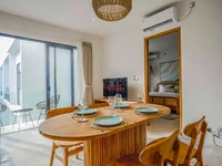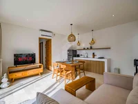 Experience golden Bali sunsets from your own modern Mediterranean apartment in the heart of Canggu. This stylish 1-bedroom home blends warmth and simplicity, offering enclosed living, a sleek kitchen, and a shared pool surrounded by tropical calm. Just steps from Jl. Nelayan and a quick ride to surf breaks, cafés, and nightlife, it’s the perfect base for digital nomads or investors seeking lifestyle and return. With west-facing views and professional management already in place, this turnkey apartment captures the very best of Canggu living - bright, effortless, and beautifully designed.