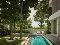🏠 Villa Features:• Land Size: Approx. 324 m² (3.24 are)• Building Size: 310 m² across 2 levels• Bedrooms: 3 – All with ensuite bathrooms• Additional Bathrooms: 1 guest toilet• Living Room: Open-plan with floor-to-ceiling glass and arched doors• Kitchen & Dining: Modern open-concept layout with direct pool access• Private Swimming Pool: With tanning ledge and timber deck• Rooftop Terrace: Expansive area with garden and sunset potential• Balcony: Master bedroom access with lush panoramic views• Furnishing: Fully furnished with curated interiors• Parking: On-site private access• Year Built: 2024 – Delivered brand new and ready for occupancy• Other Features: Lush garden, private access, and tropical landscaping