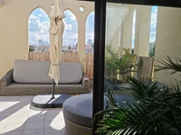 В самом сердце исторического района Аджами этот пентхаус занимает верхний этаж бутик-здания в стиле Баухаус. Он расположен недалеко от резиденции посла Франции и в нескольких минутах ходьбы от моря.