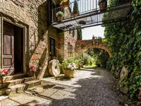 Историческая мельница также оснащена большой гостиной (100 квадратных метров) и подвалов. Состояние и заканчивает каменное здание восходит к 16 веку и является старейшей мельницей для зерновых / дробил в районе Кастагнето Кардукчи. В прошлом собственность принадлежала к благородной тосканской семье. Историческая мельница характеризуется терракотовыми полами, деревянными полами, потолками с круизными хранилищами, деревянными балками, деревянными балками и терракотами, плитками, кирпичами и каминами.