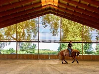 Прекрасен крытый манеж, занимающий около 2700 квадратных метров, в дополнение к различным открытым загонам, оборудованным навесами и крытым рингом.
