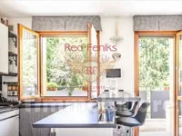 Доступ на виллу осуществляется со второго этажа, где у входа, после большой террасы с прекрасным видом на озеро, находится светлая гостиная и гостиная с термовентилируемым камином. Рядом находится кухня-столовая с кладовой и гостевой санузел.