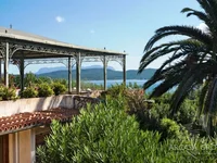 Вилла на Сардинии расположена в Порто-Ротондо, на улице Пунта Лада с террасой и великолепным видом на море. Площадь виллы составляет 400 кв.м., террасы и беседка — 80 кв.м., веранда — 110 кв.м и сад — 2100 кв.м. Вилла в Италии состоит на первом этаже из гостиной, кухни, столовой с выходом на террасу, хозяйская спальня с ванной комнатой и гардеробной. На нижнем уровне находятся 4 сьюта, каждый с двумя спальнями и с ванными комнатами (две с гардеробными), спальня с ванной комнатой. Вилла окружена садом около 2100 кв.м., с пальмами и средиземноморской растительностью. Дом на Сардинии расположен в 200 метрах от моря, в непосредственной близости от известной виллы Чертоза. До моря можно пройти через парк консорциума с бассейном, частным пляжем и причалом для швартовки катеров. Вилла нуждается в ремонте.