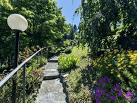 Вилла имеет большой частный сад около 4100 кв. М, что обеспечивает конфиденциальность. Большая часть сада плоская, а вилла, расположенная на более высоком месте, имеет прекрасный панорамный вид, который простирается от Лекко к северу от озера Комо, напротив Гринь.