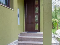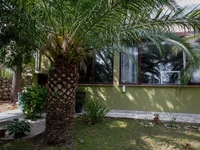 — по периметру растут вечнозеленые растения, также на самом участке две взрослые пальмы, могучий дуб и красавица сосна. Воздух сочетает в себе морскую,горную и лесную составляющие, редкое сочетание.Зимой с северной стороны дом защищен от мощного холодного ветра Бура горным кряжем;