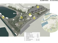 - 32-квартирного дома, общей площадью 4458.9 м2, с расположенным на 1 этаже бассейном и помещениями для фитнеса и паркингом и глемпинга со своим озером.