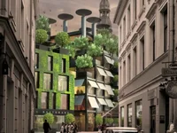 Разработаны 2 сценария застройки данного земельного участка. Первый предусматривает строительство гостиничного комплекса, второй - апартаментов. В зависимости от выбранного варианта есть возможность построить комплекс суммарной площадью 14600 кв.м. с подземной автостоянкой на 60 автомашин, шестью надземными этажами и функционально используемой крышей.