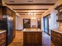 КУХНЯ: массив дуба, витражи - тиффани, гранитная поверхность - раковина. Оборудование Siemens, Liebherr, AEG.