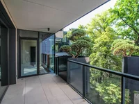 - Балконы и террасы с видом на зелёный внутренний двор и деревья бонсаи