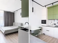 - Функциональная планировка: Прихожая, спальня, гостиная с кухней.