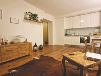 Встроенная мебель и бытовая техника: кухня, большой шкаф в спальне, а также в прихожей.