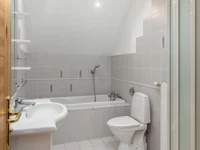 - 2 этажа, 230 м2, 3 спальни (каждая с отдельным туалетом и ванной или душем), просторный коридор и каминный зал с натуральным паркетом, кухня, сауна, гараж с автоматическими воротами, 2 террасы, домофон;