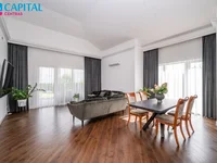 • Функциональная планировка: просторная гостиная с высокими потолками до 4,8 м, кухонная зона и столовая, три спальни, гардероб, рабочая комната, три песчаных узла.
