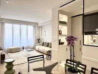 Полностью меблированная в современном стиле, квартира предлагает общую площадь 132 м² и включает светлую гостиную, выходящую на балкон, столовую зону и стильную кухню открытой планировки.