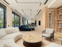 Split level 2 terraces in the courtyard for relaxing and lounging, outdoor swimming pool total area of 70 sq.m., parking with 4 places inside the gate, terrace with outdoor fireplace and contemporary outdoor design furniture and lighting.