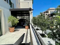 Площадь квартиры 156м2. Просторная терраса с видом на внутренний променад и горы. На террасе есть отдельно солнечная зона с лежаками и крытая тенистая часть с мебелью для отдыха. Пергола над тенистой частью может открываться под любым углом, хорошо защищая от солнца и дождя и одновременно пропуская солнечные лучи.