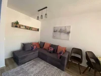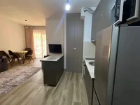 Квартира располагает гостиной с кухней, отдельной спальней, ванной и балконом с красивым видом на город.