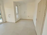 Планировка квартиры: гостиная совмещенная с кухней и столовой, спальня, санузел и терраса. Квартира без мебели и никогда в ней не жили, что оставляет возможность покупателю приспособить ее к своим потребностям. В квартире есть кухня и шкаф в спальне. Из гостиной можно выйти на террасу с видом на море.