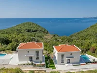 Продается комплекс из двух новых вилл с бассейнами и видом на море в Режевичах, в районе Смоков-Вьенац, под главной дорогой, примерно в 300 метрах от моря, отдельные районы 635м2 и 575м2.